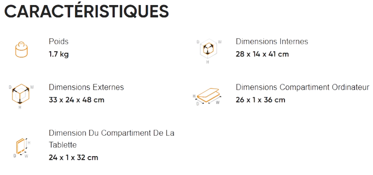 Dimensions Compartiment Ordinateur